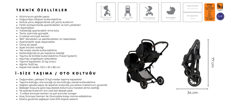 Prego Ibiza Plus I-Size İkiz Travel Sistem Bebek Arabası Siyah